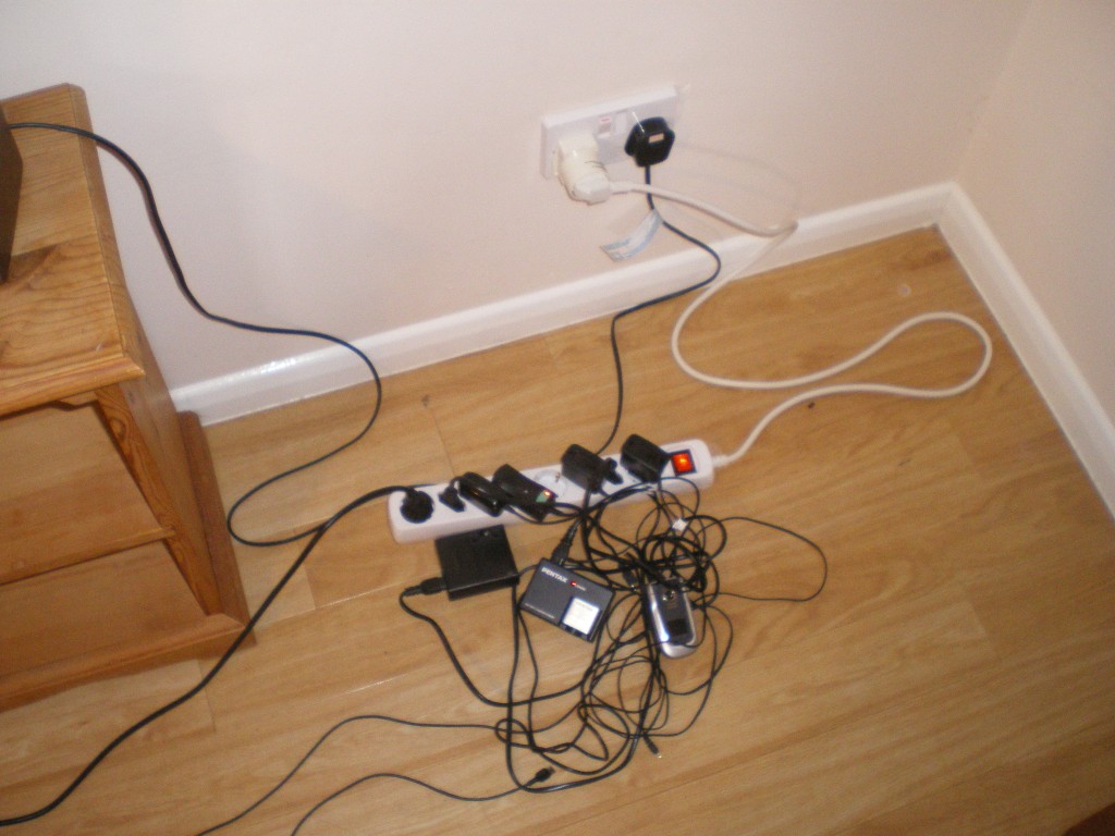 De Tomtom wordt in de auto opgeladen. Voor de telefoons en camera’s hebben we opladers meegenomen. En voor die opladers hebben we een stekkerdoos mee. En omdat de Engelsen andere stopcontacten hebben dan wij, hebben we ook een ‘verloopstekker’ gekocht en meegenomen. Met dank aan mijn zus die ons hierop attendeerde.