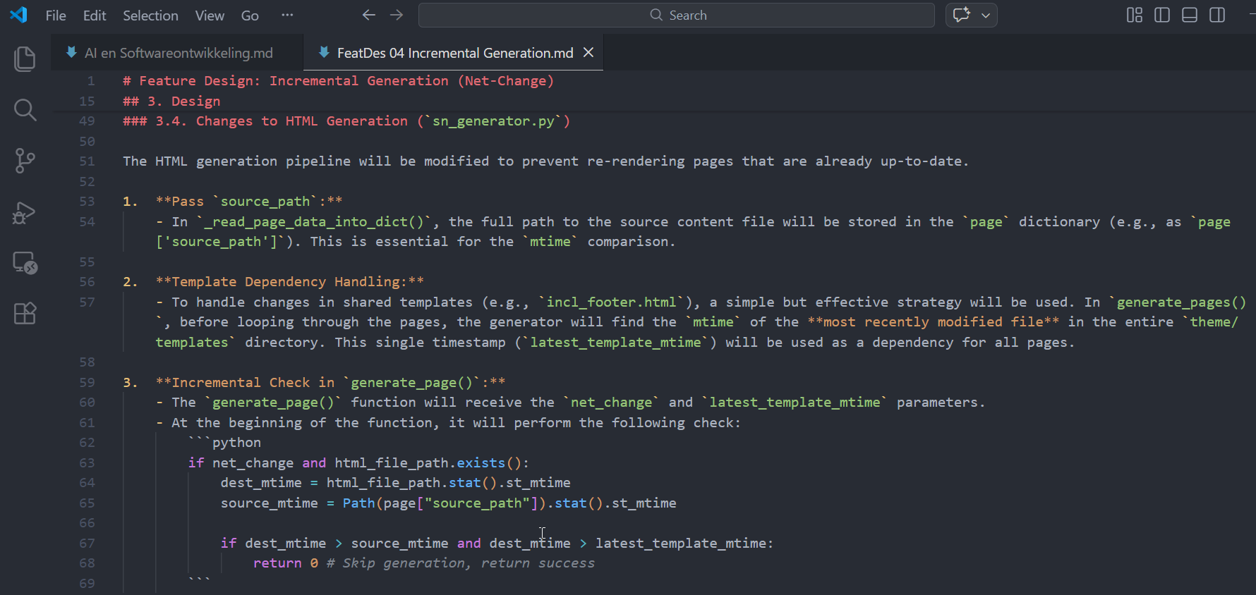 Het denken en praten met de collega's en de AI heeft nu een "oplossingsrichting" opgeleverd. Kunnen we dan nu eindelijk gaan programmeren? Nee, nog niet. We moeten dan eerst een ontwerpdocument maken. Pas als je alles netjes uitwerkt en opschrijft, wordt het duidelijk welke functies je allemaal moet maken of aanpassen.