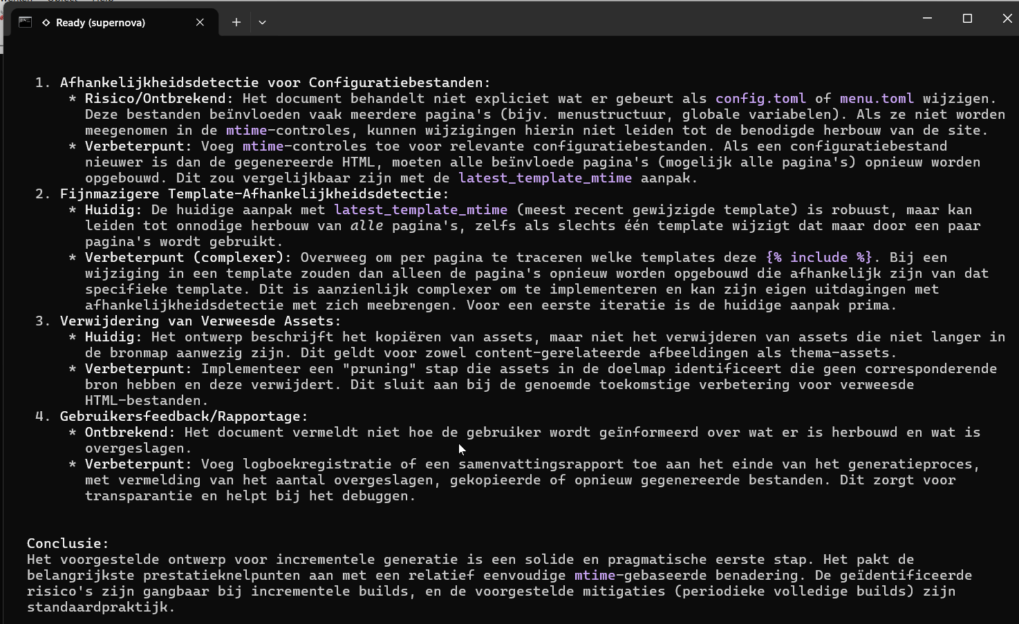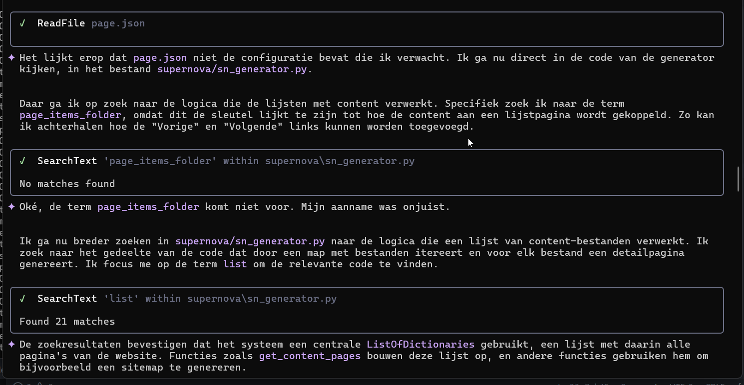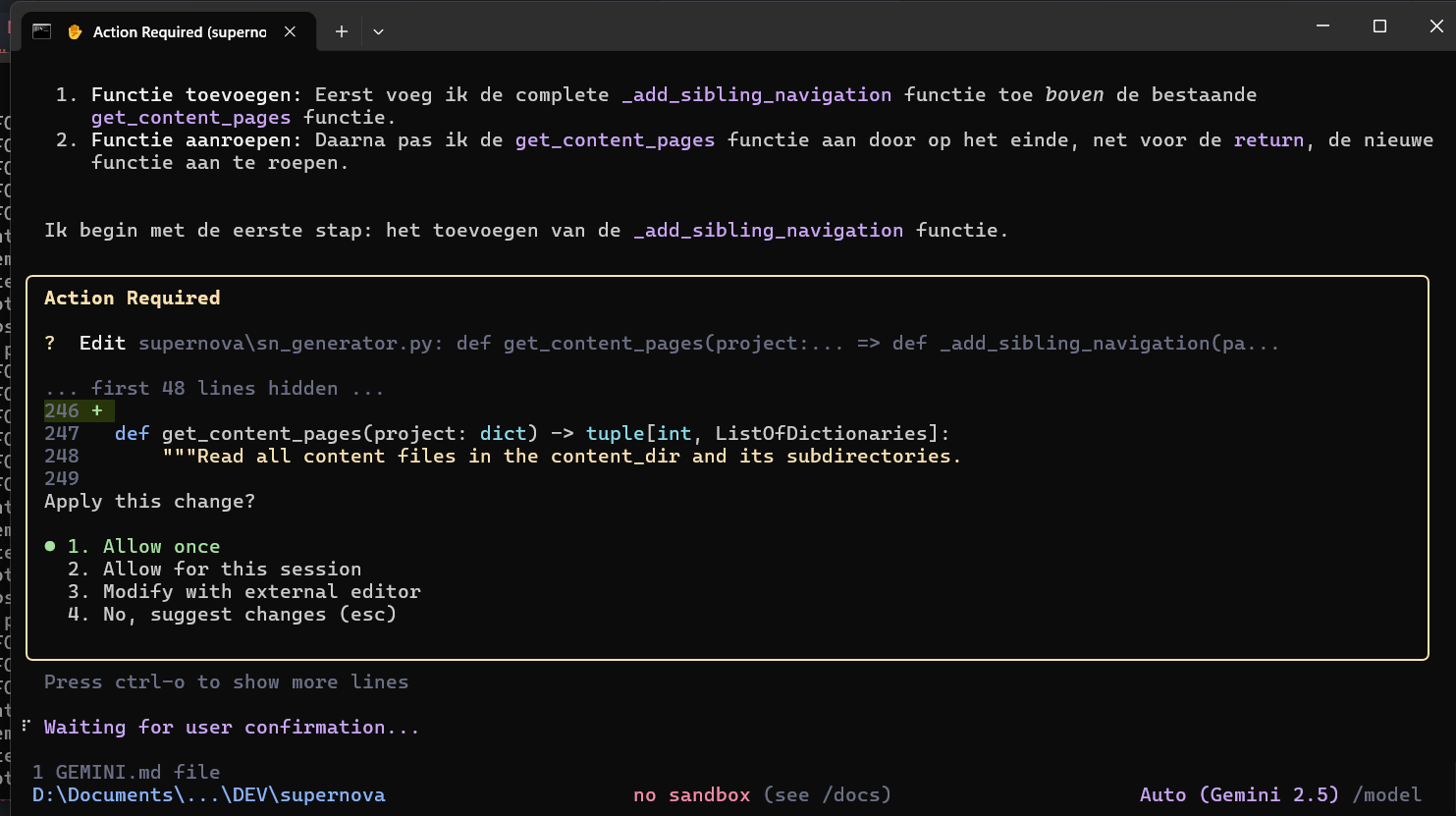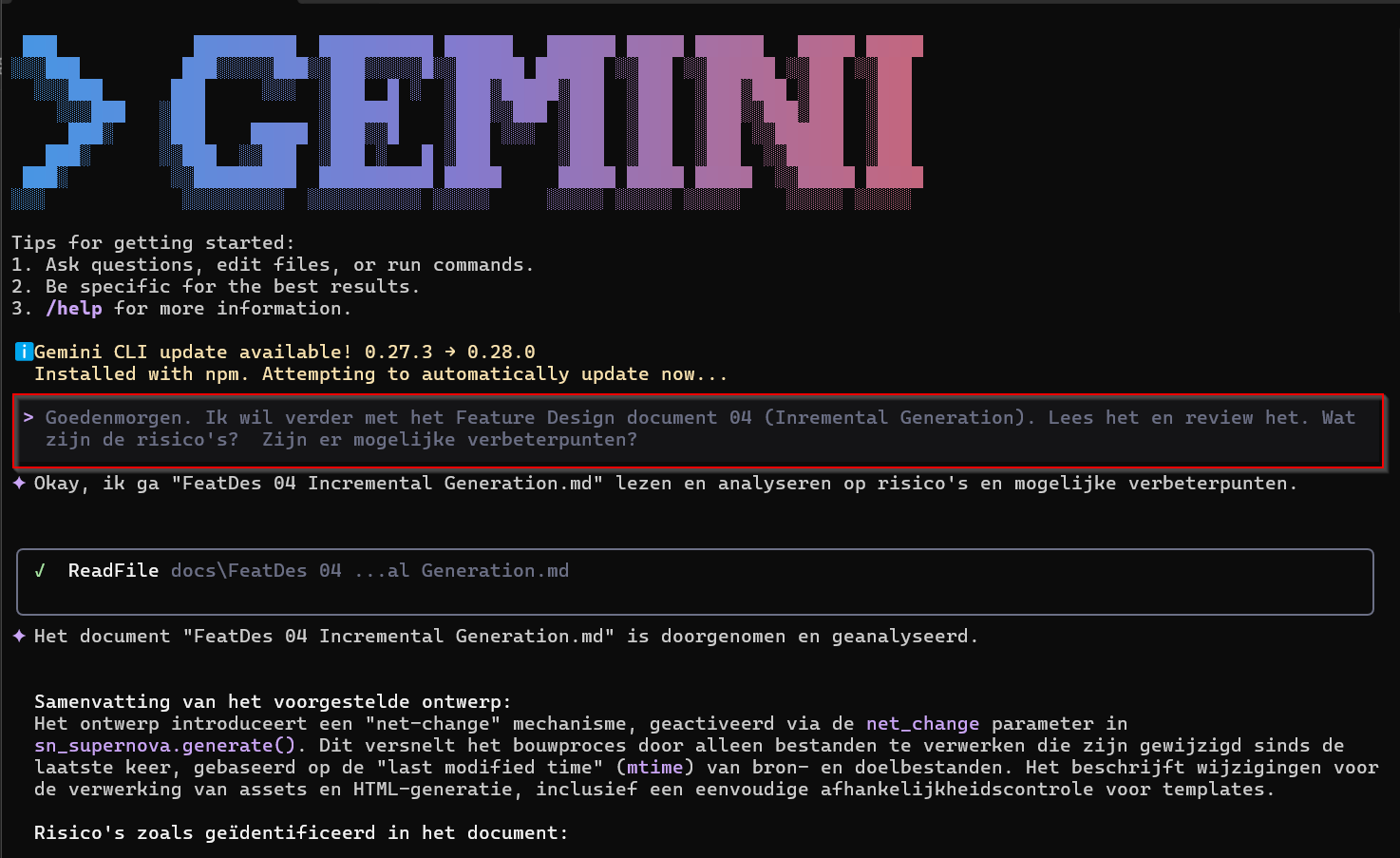 Ik heb Gemini CLI gebruikt om hiermee uitbreidingen te ontwikkelen voor mijn Supernova static website generator.